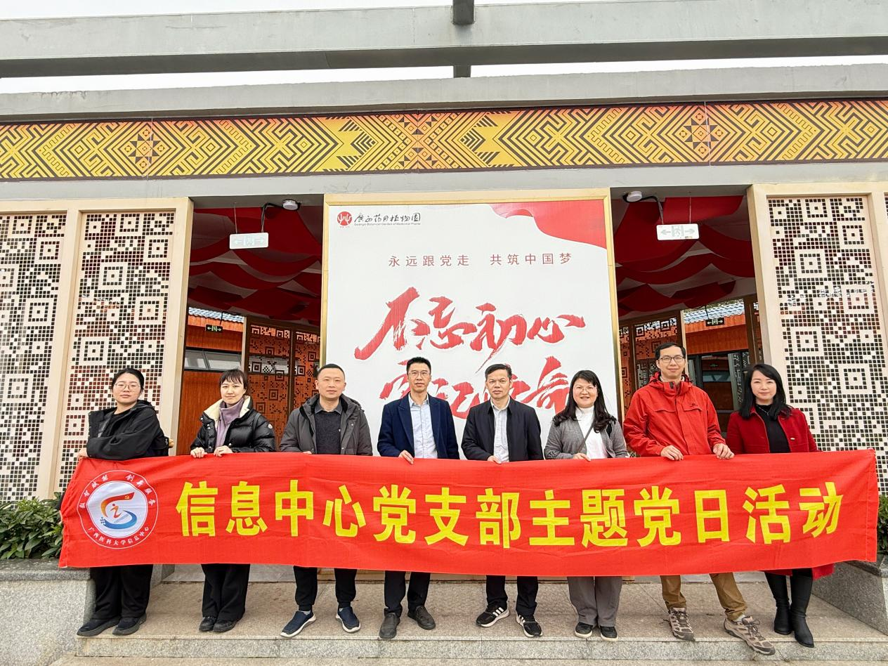 春风催新绿,植树正当时。在第47个植树节到来之际,为深入践行习近平生态文明思想,充分发挥党员先锋模范作用,2025年3月7日下午,信息中心党支部联合教务处、科技处、教评中心、学报编辑部等五个党支部前往广西药用植物园开展“党建引领添新绿,植树造林践初心”主题党日活动,以实际行动为春日添绿,为党旗增辉。